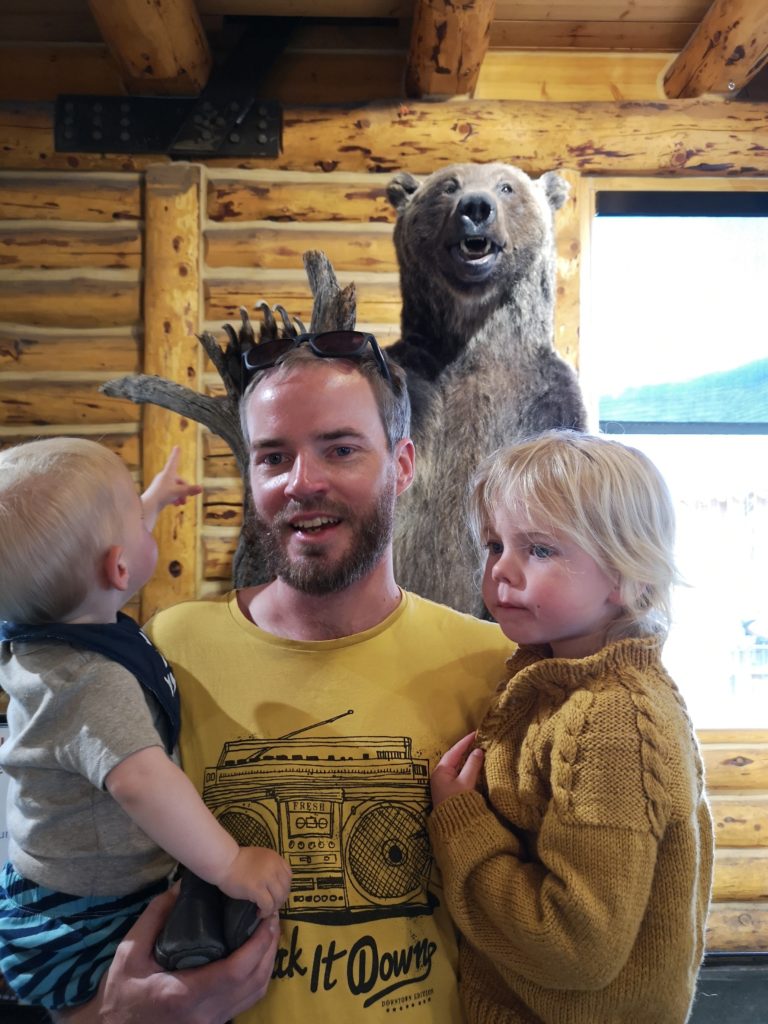 Bom bom så blev det mandag. Vi startede ud med at køre til en modeltogpark. Det var nogle danskere som havde stedet og havde brugt MANGE år på at bygge huse, mennesker, tog osv., det var virkelig imponerende. Jeppe var især fascineret af en mand der tissede, når han trykkede på en knap. Da vi havde set nok på tog kørte vi vestpå. De første to timer var der ro i hytten, da de små drenge sov middagslur og vi gamle på forsædet nød stilheden, fordybet i egne tanker.