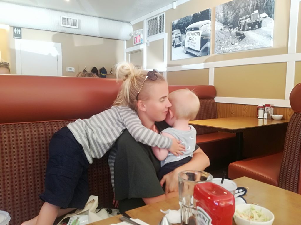 Tina havde en forestilling om at vi skulle spise frokost i Sunshine Valley. Det viste sig dog ikke at være en by, men tre huse og et skur. Men heldigvis var der HOPE forude og da Hope var en rigtig by, fandt vi et dejligt lokalt sted der hed HOME, hvor vi fik steaks, og lækker apple pie to go, da vi var alt for mætte. Jeppe nøjedes med pandekage (tror han savner rugbrød med leverpostej), mens Johan var mere frisk og skulle smage det hele.