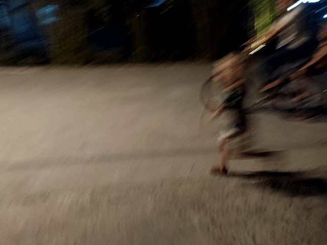 Vi fandt en pandekagebod på hjørnet af markedet, og gik ud og så det overdådige lysshow på havnen. Herefter tog vi en grab hjem, og der var ingen problemer med betalingen. Vi blev sat af ude ved vejen (fordi vi bad om det), og her, ved den helt lokale kiosk, mødte vi en af de ansatte fra hotellet. Hun gav Jeppe en pose chips, og et lift hjem bag på sin cykel.