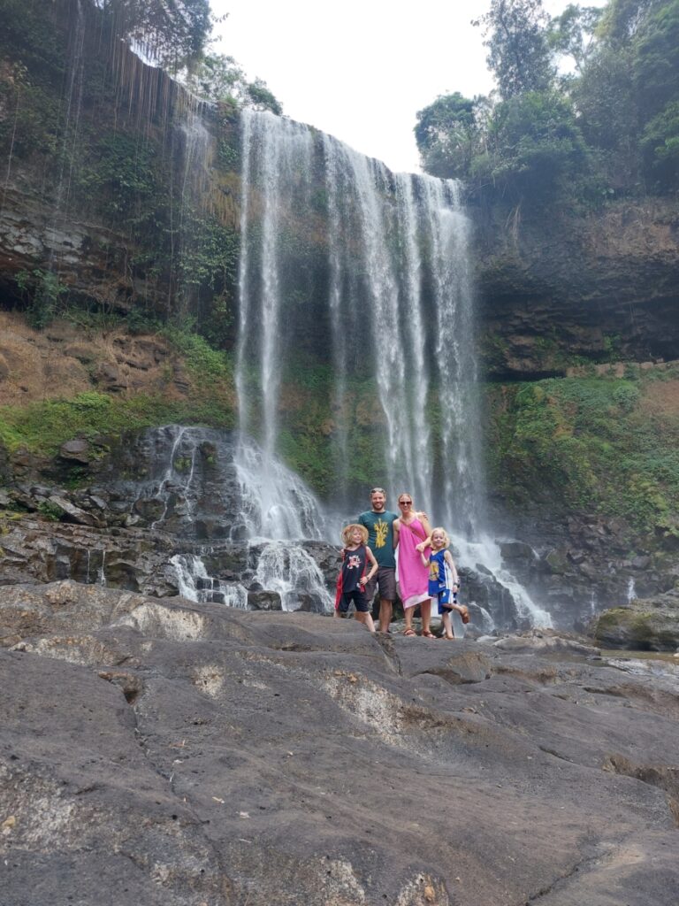 Op i jeepen igen og af sted mod Dambri (indsæt selv apostrof, eller lad være), som er en forlystelsespark bygget op rundt om et stort og et lille vandfald. Vi havde det helt for os selv, og tog en rodelbahn ned til det lille vandfald, hvor vores søde chauffør tog nogle billeder af os. Vi slentrede lidt rundt i junglen og blev stukket af nogle myg, inden vi nåede til det store vandfald.Her kravlede vi lidt rundt, og da vores chauffør også kom forbi, tog han flere billeder for os. Drengene nød at tosse lidt rundt ved vandfaldet, inden vi tog en elevator op forbi det.