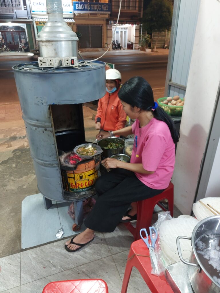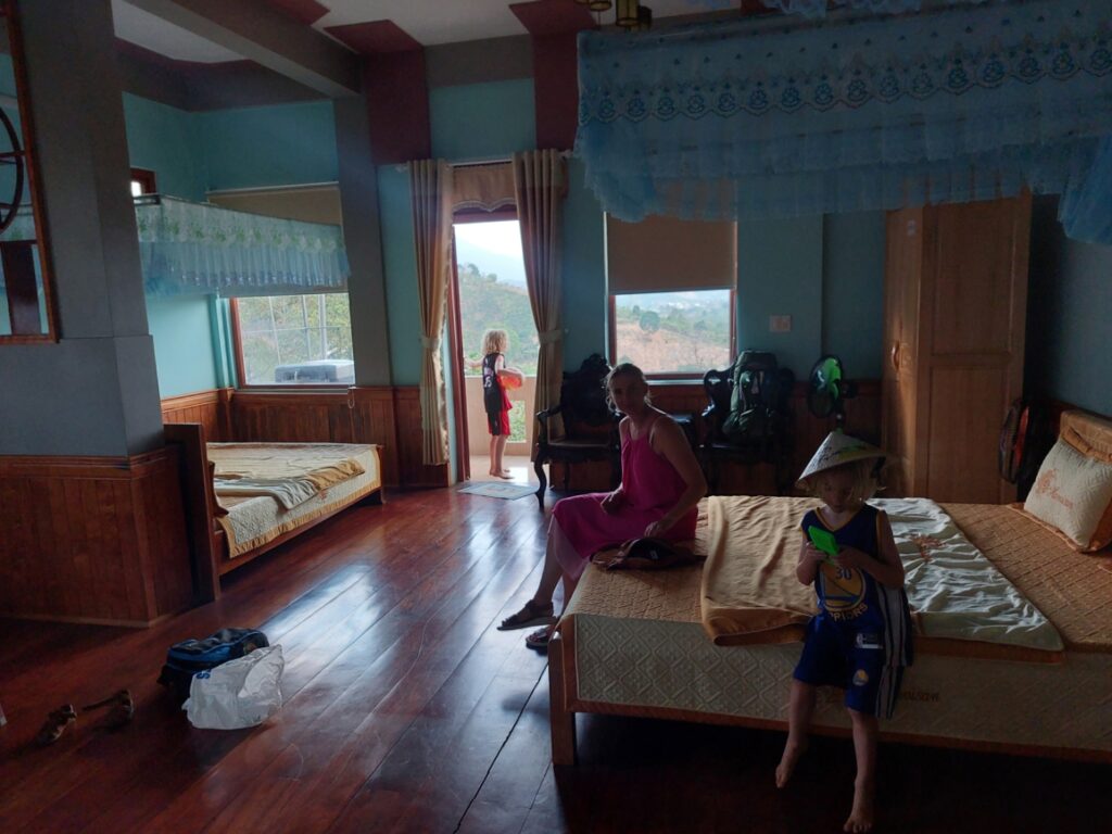 Tilbage på hotellet, hvor vi har fået et kæmpeværelse. Det føles virkelig dejligt endelig at have noget plads, både et bord og tre store senge. Vi gik på jagt i den nye by efter aftensmad, og fandt et eller andet risgrød, som drengene da skulle smage. Det var ikke et hit, så vi fandt et lokalt sted lige overfor hotellet, hvor den rare dame sad og stemte rispandekager med æg over en fin hjemmelavet ovn. Tina fik frempeget nogle pandekager til os. De var virkelig gode, og eftersom hun kun kunne lave en af gangen, gik det på tur, en til os, en til bordet udenfor, en til bordet ved siden af os, og så os igen, med mindre der stod en med en scooter, der lige skulle have noget med. Johan spiste cirka 600 rispandekager, så det må vi prøve derhjemme også. Hjemme på hotellet var der endelig plads til at børnene kunne putte, og Tina og Mads kunne nyde en kold øl inden sengetid.